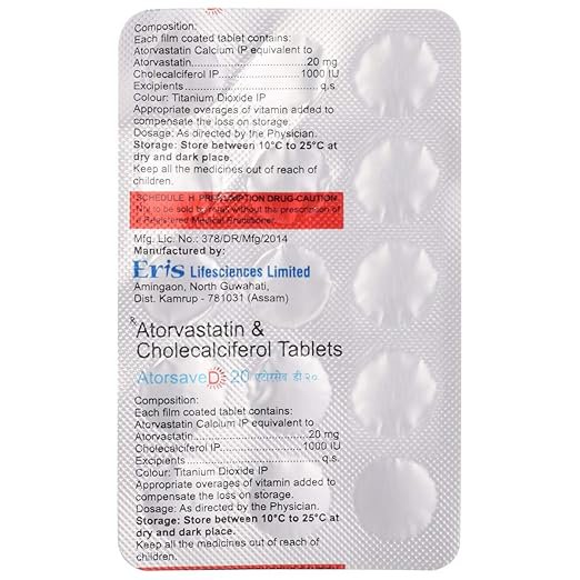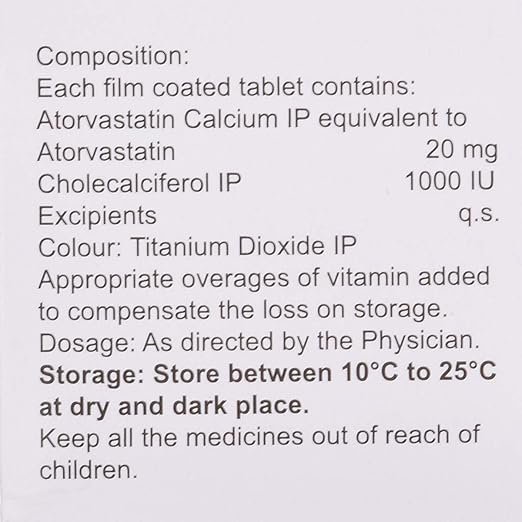 This combination medication, Atorsave D 20mg Tab (Atorvastatin + Cholecalciferol), is used to lower cholesterol and treat vitamin D deficiency. It’s important to follow your doctor’s instructions on dosage, and to report any side effects immediately. This medication requires careful monitoring, especially for patients with liver or kidney conditions. Always discuss any concerns with your healthcare provider.
