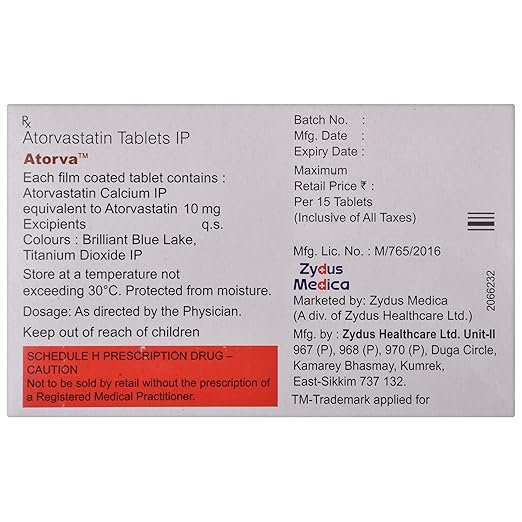 Atorva 10mg Tab (Atorvastatin) is a medication used to lower cholesterol levels. It works by blocking the production of cholesterol in the liver. It is important to take this medication exactly as prescribed by your doctor. Common side effects include muscle pain and weakness, headache, indigestion, constipation, diarrhea, and rash. If you experience any side effects, contact your doctor immediately. Avoid excessive alcohol consumption, and do not drive or operate machinery until you know how this medication affects you. Atorvastatin is not recommended for pregnant or breastfeeding women, and it is not usually prescribed for children. If you have kidney or liver problems, your doctor may need to monitor you closely.