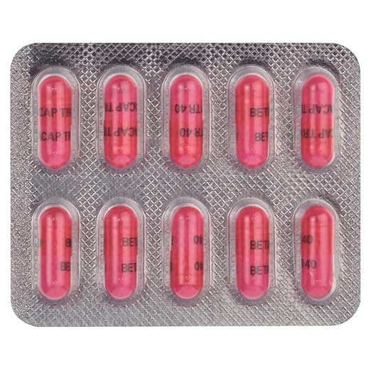 Betacap TR 40 Capsule is a medicine used to prevent angina (chest pain) and migraine, and manage pheochromocytoma (a rare adrenal gland tumor). It works by slowing the heart rate and relaxing blood vessels, helping to reduce strain on the heart and improve blood flow.