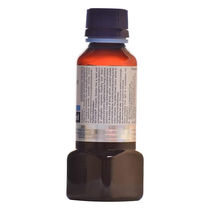 Betadine 10% Solution is an antiseptic and disinfectant agent. It is used for the treatment and prevention of infections in wounds and cuts. It kills the harmful microbes and controls their growth, thereby preventing infections in the affected area.