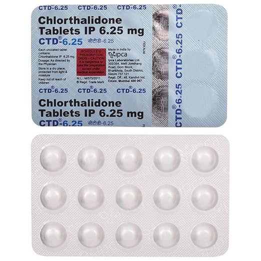 Ctd 6.25mg Tab (Chlorthalidone) is a medication that helps lower blood pressure and reduce fluid retention. It works by increasing urine production, which helps to get rid of excess fluids and salt. It is important to take chlorthalidone exactly as prescribed by your doctor. Common side effects include dehydration, electrolyte imbalances, headache, dizziness, fatigue, nausea, vomiting, muscle cramps, increased sensitivity to sunlight, sexual dysfunction, and increased risk of gout. It is important to avoid alcohol consumption, driving or operating machinery until you know how this medication affects you. It is generally not recommended for use during pregnancy or breastfeeding. People with kidney or liver disease should use chlorthalidone with caution.