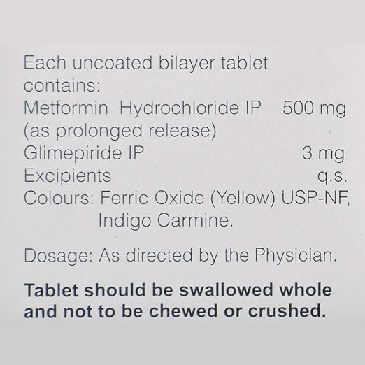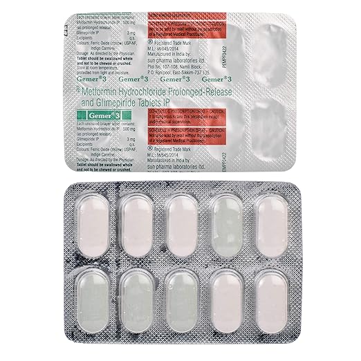 Gemer 3 Tablet PR is a combination of two antidiabetic medicines: Glimepiride and Metformin. Glimepiride is a sulfonylurea that works by increasing the amount of insulin released by the pancreas to lower the blood glucose. Metformin is a biguanide that works by lowering glucose production in the liver, delaying glucose absorption from the intestines, and increasing the body’s sensitivity to insulin.