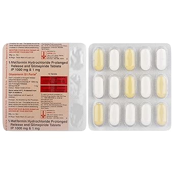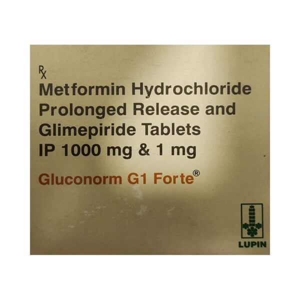 Gluconorm-G 1 Forte Tablet PR is a combination of two antidiabetic medicines: Glimepiride and Metformin. Glimepiride is a sulfonylurea that works by increasing the amount of insulin released by the pancreas to lower the blood glucose. Metformin is a biguanide that works by lowering glucose production in the liver, delaying glucose absorption from the intestines, and increasing the body’s sensitivity to insulin.