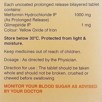 Use it as advised by your doctor or check the label for directions before use. Gluconorm-G 1 Forte Tablet PR is to be taken with food.