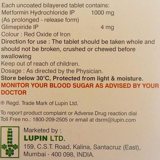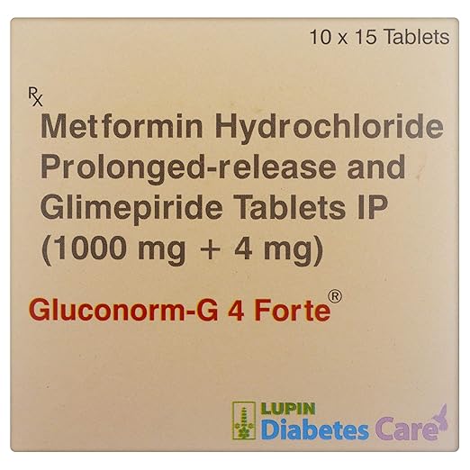 Gluconorm-G 4 Forte Tablet PR is a combination of two antidiabetic medicines: Glimepiride and Metformin. Glimepiride is a sulfonylurea that works by increasing the amount of insulin released by the pancreas to lower the blood glucose. Metformin is a biguanide that works by lowering glucose production in the liver, delaying glucose absorption from the intestines, and increasing the body’s sensitivity to insulin.