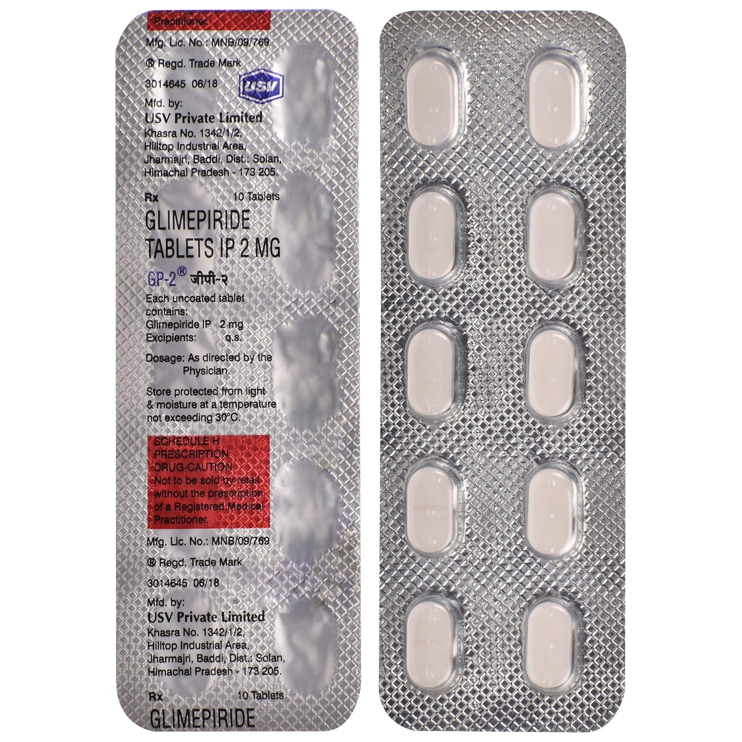 GP 2 Tablet belongs to a group of medicines called sulfonylureas and is used to treat type 2 diabetes mellitus in adults. It helps control blood sugar levels in people with diabetes thereby preventing serious complications of diabetes such as kidney damage and blindness.